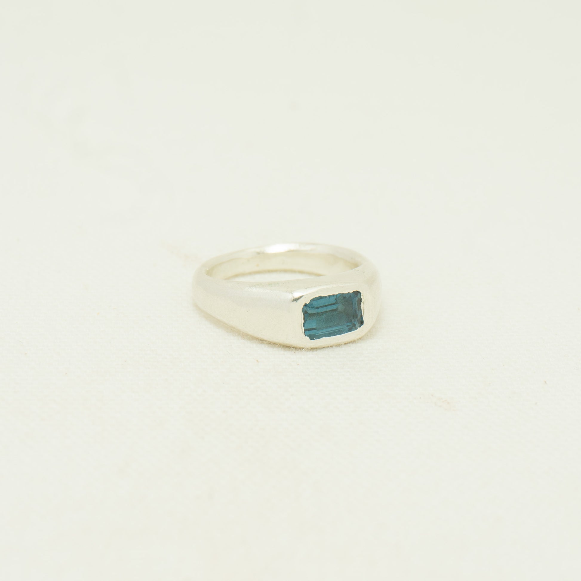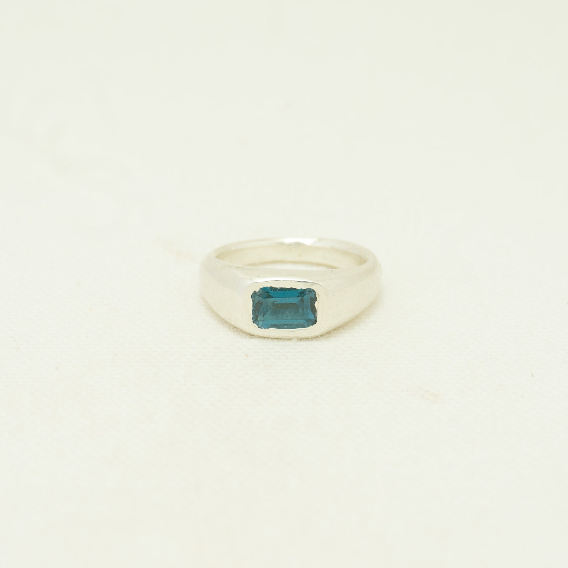 Soft solitaire signet featuring a deep London blue topaz.